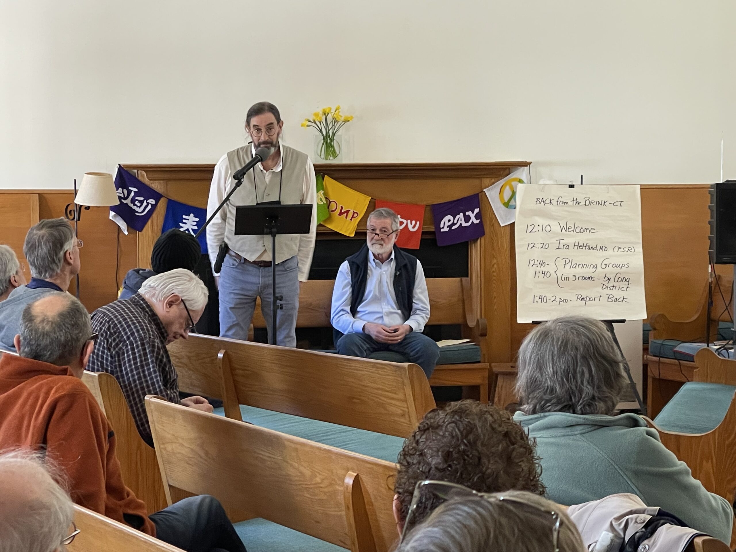 More than 30 people, including many newcomers to the Hub, gathered at the Hartford Quaker Meetinghouse. The event opened with Ira Helfand, an internationally recognized leader of the nuclear abolition movement, providing his analysis of the current political and social environment as related to advocating for nuclear weapon abolition—followed by a Q&A session.