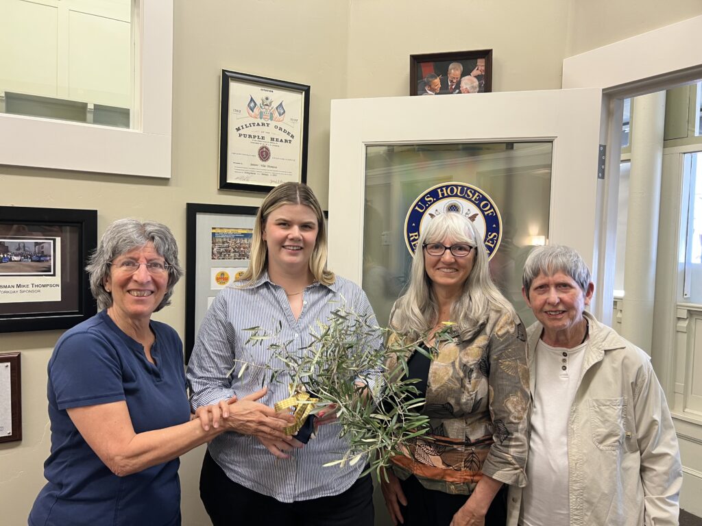 Davis CAN members Sarah Pattison, Genevieve Colborn, and Judy Reynolds with Lucy Brazil, District Director for Congressman Thompson (2nd from left), at the Congressman’s district office.