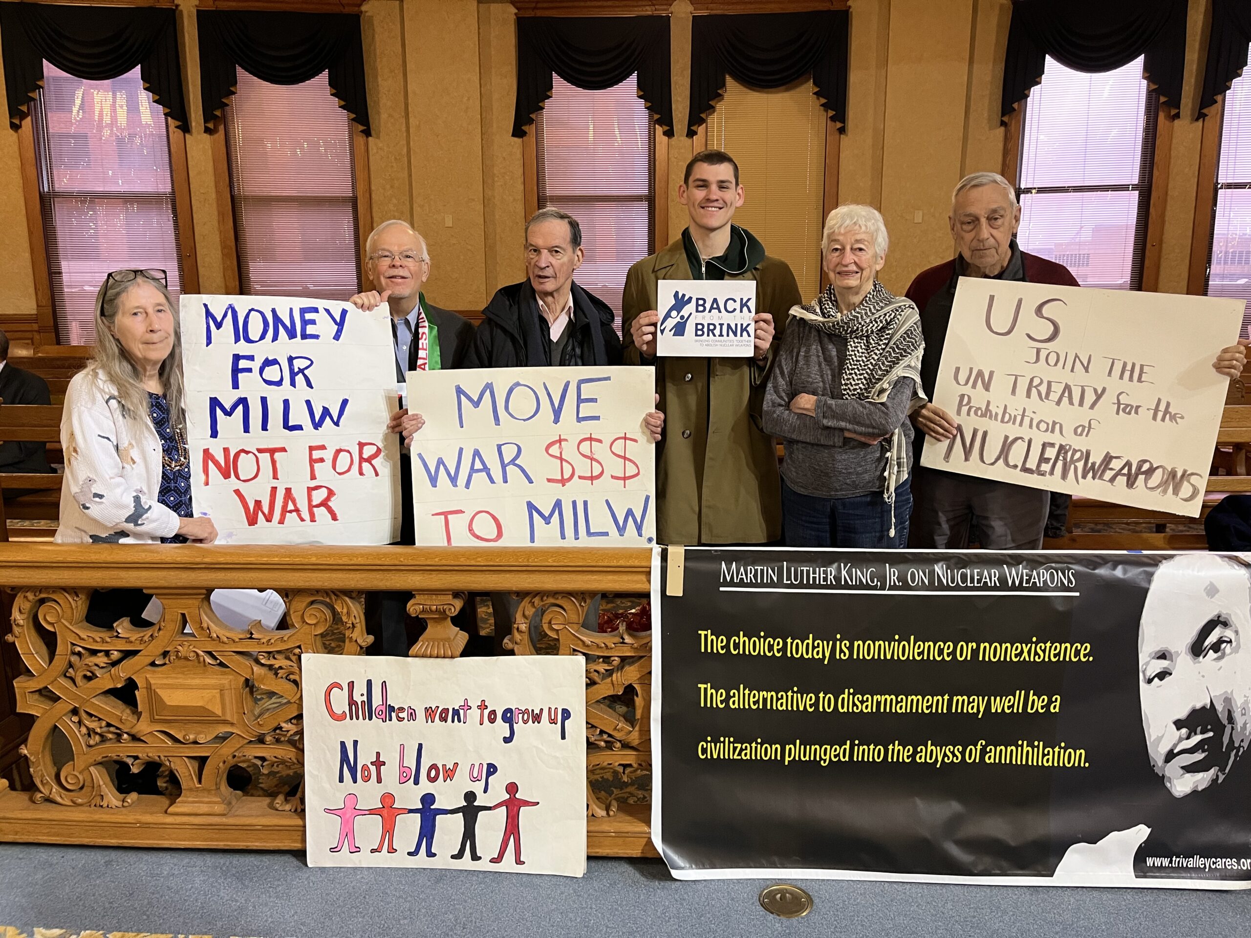 Back from the Brink congratulates the coalition of 18 organizations and dozens of activists who came together for the Milwaukee resolution effort: Peace Action-Wisconsin, Milwaukee Veterans for Peace, Physicians for Social Responsibility-Wisconsin,