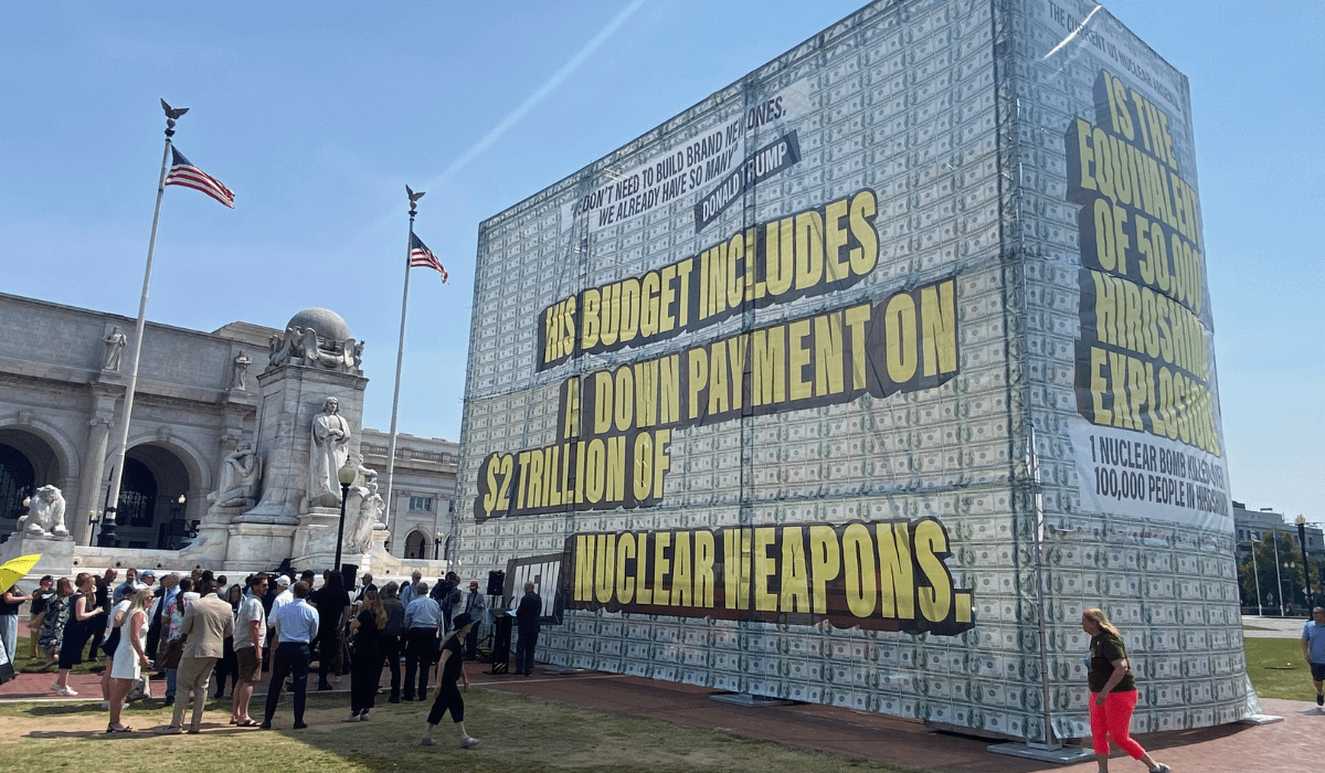 Last week in Washington, D.C., a monumental sculpture of one billion stacked one-hundred dollar bills rose before the Capitol, towering in defiance of a political system long addicted to war. At its base, a growing wave of voices—veterans, peacemakers, faith leaders, and grassroots organizers—came together to launch Up in Arms, a bold new campaign demanding that the United States shift its priorities from military domination to human security.